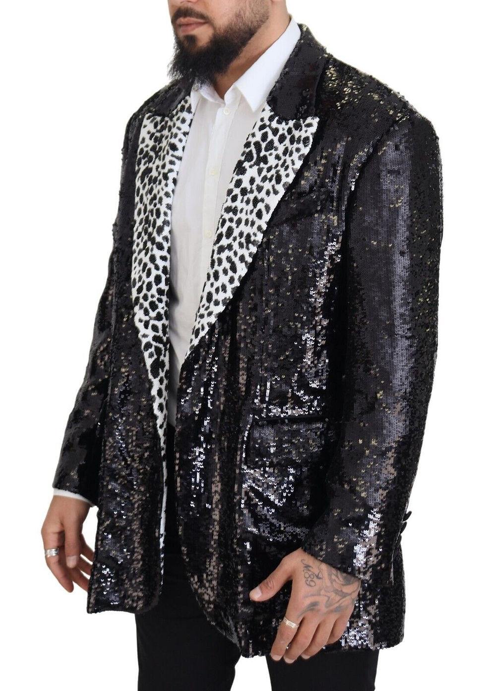 Dolce & Gabbana Black Sequined Cow Pattern Nylon Blazer