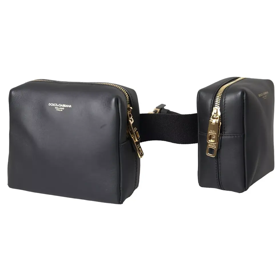 Dolce & Gabbana Black Calfskin Leather Double Waist Belt Fanny Pack Bag