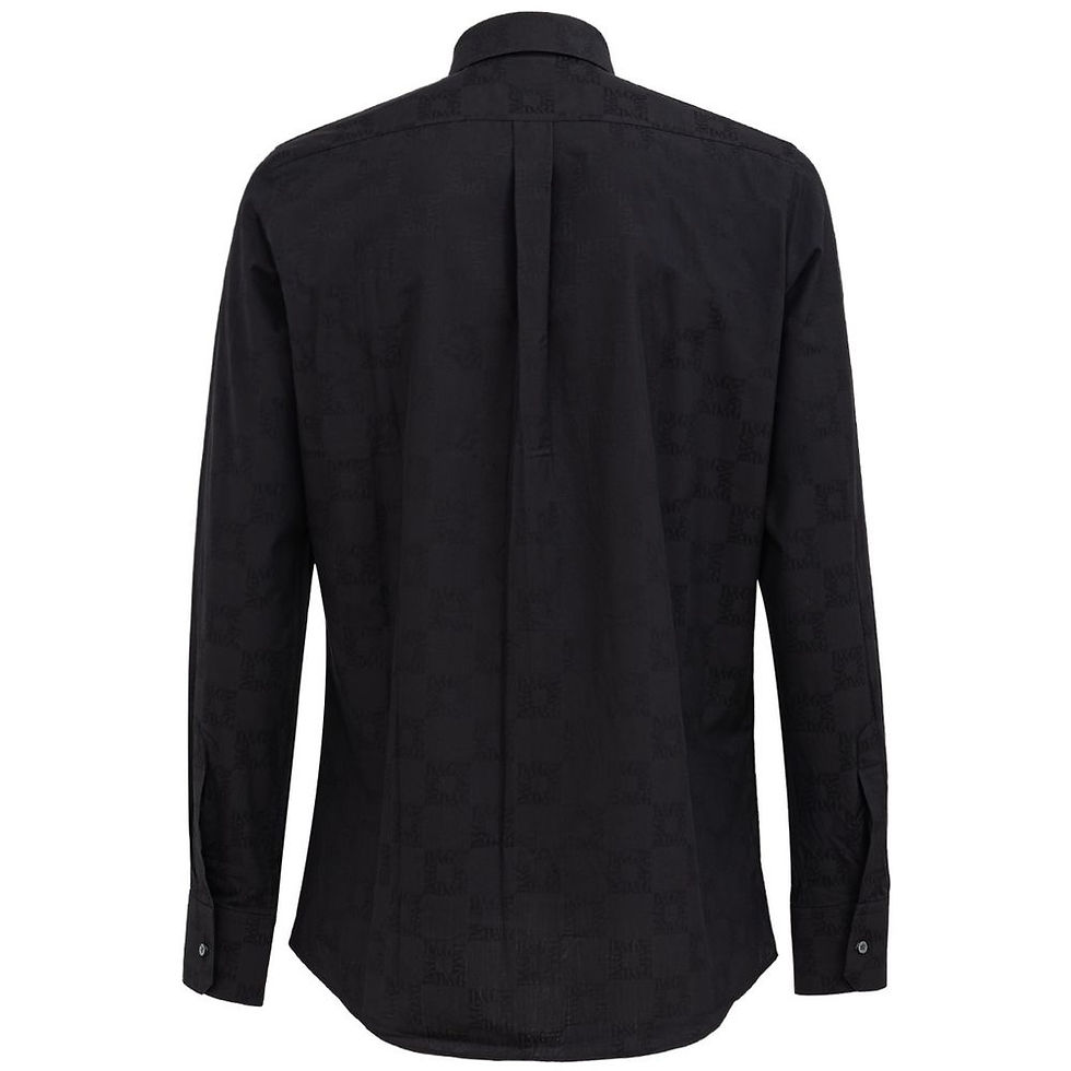 Dolce & Gabbana Black Floral Cotton Collared Long Sleeves Men Shirt