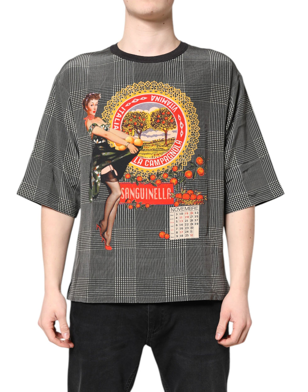 Dolce & Gabbana Gray Polka Dot Pin-Up Print Crew Neck T-shirt