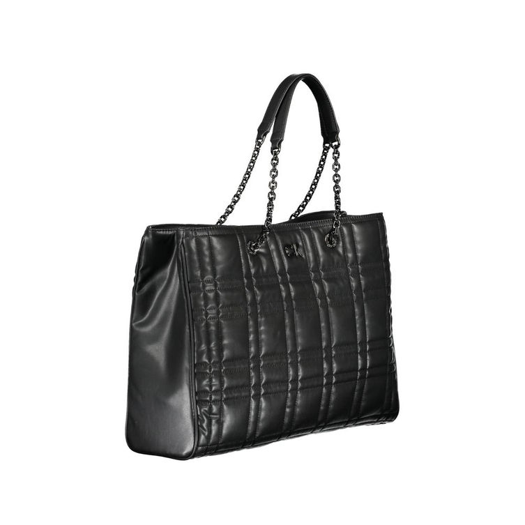 bag with 2 chain shoulder handles, 2 compartments, 1 central pocket, 1 inside pocket, contrasting details, zip and snap closure, logo, 100% recycled polyester