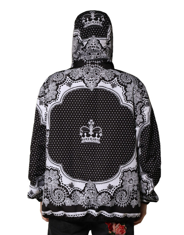 Dolce & Gabbana Black Bandana Print Hooded Bomber Jacket