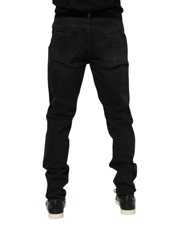 Dolce & Gabbana Black Cotton Logo Plaque Skinny Denim Jeans