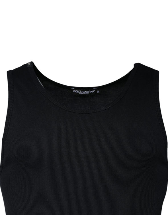 Dolce & Gabbana Black Cotton Sleeveless Round Neck Tank T-shirt