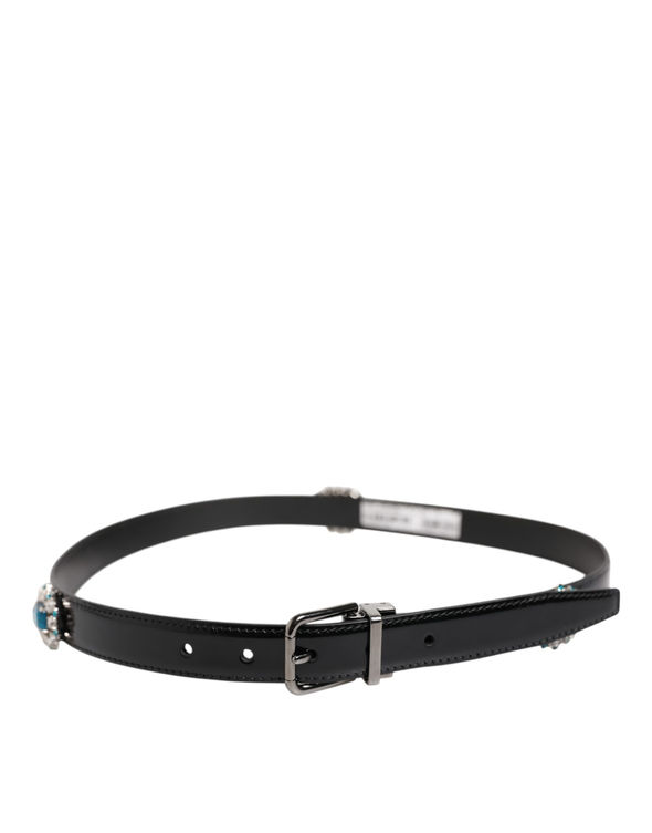 Dolce & Gabbana Black Embellished Metal Logo Buckle Belt