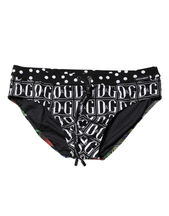 Dolce & Gabbana Black Floral Logo Beachwear Men Brief Swimwear