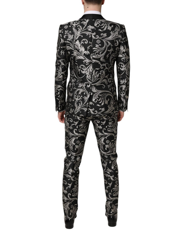 Dolce & Gabbana Black Gray MARTINI Jacquard Men 3 Piece Suit