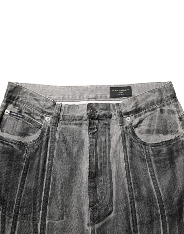 Dolce & Gabbana Black Grey Graphic Print Denim Pants Jeans