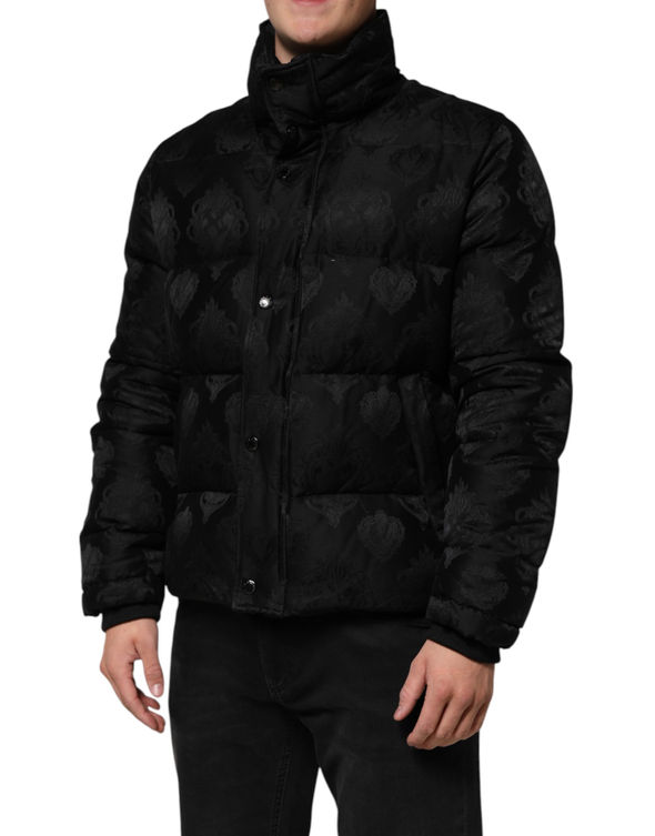 Dolce & Gabbana Black Jacquard Quilted Puffer Bomber Jacket