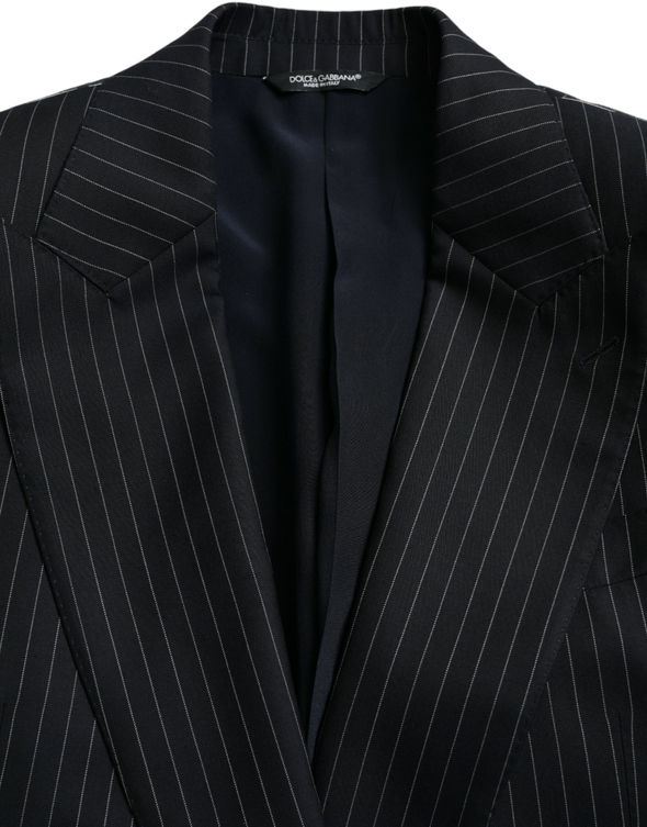 Dolce & Gabbana Black Stripe SICILIA Double Breasted Coat Blazer