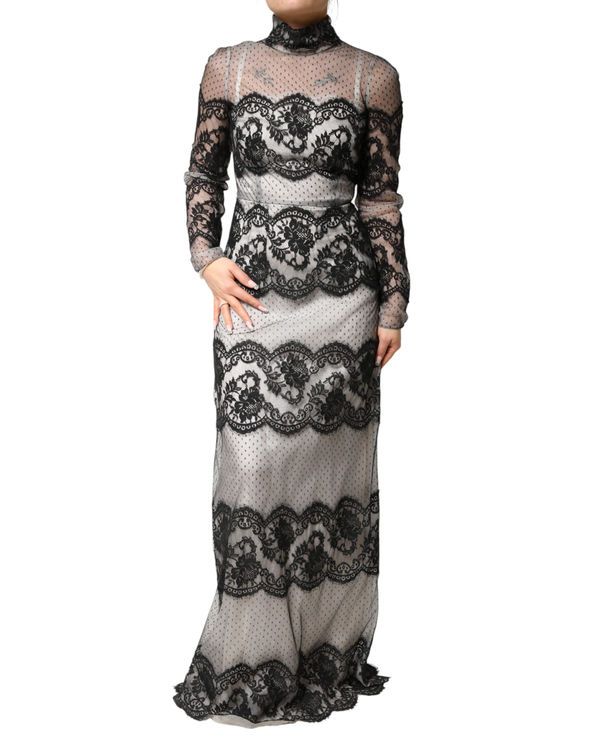 Dolce & Gabbana Black White Lace Silk Blend MaxiSheath Dress