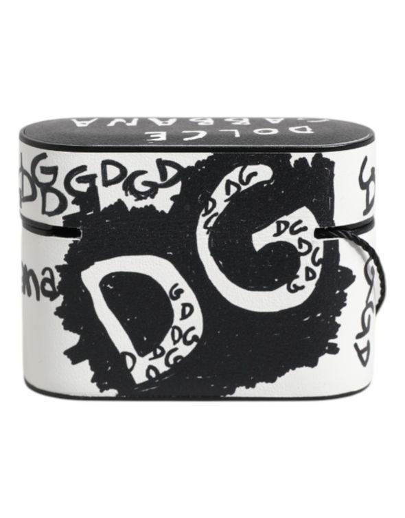 Dolce & Gabbana Black White Leather Scribble Embossed Logo Airpods Case