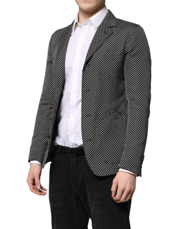Dolce & Gabbana Black White Patterned Men Suit Coat Blazer