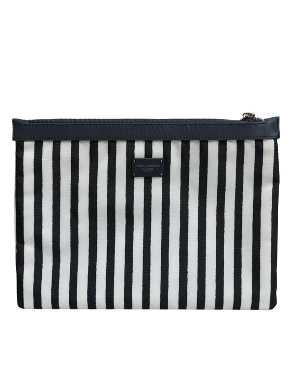 Dolce & Gabbana Black White Striped Logo Plaque Clutch Pouch Bag