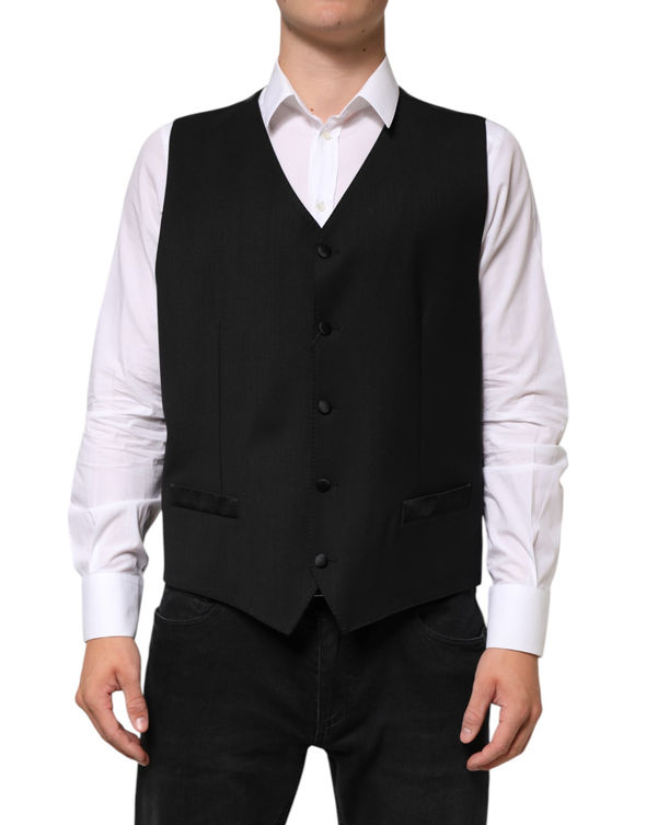 Dolce & Gabbana Black Wool Dress Formal Men Waistcoat Vest