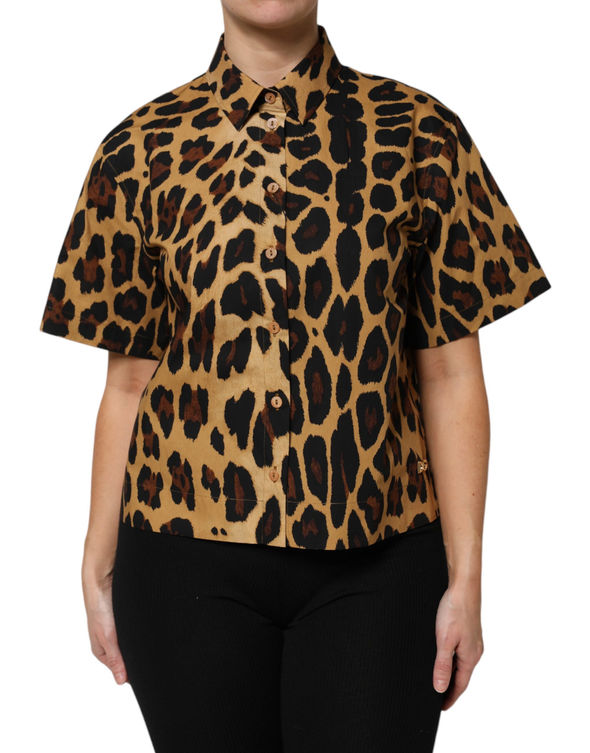 Dolce & Gabbana Brown Leopard Short Sleeve Collared Polo Top