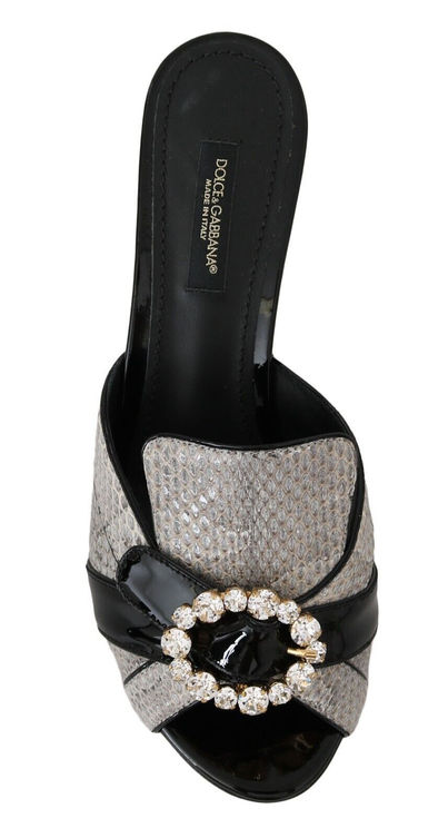 Dolce & Gabbana Black Gray Exotic Leather Crystals Sandals Shoes