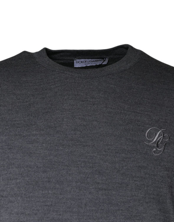 Dolce & Gabbana Dark Gray Wool Crew Neck Pullover Sweater