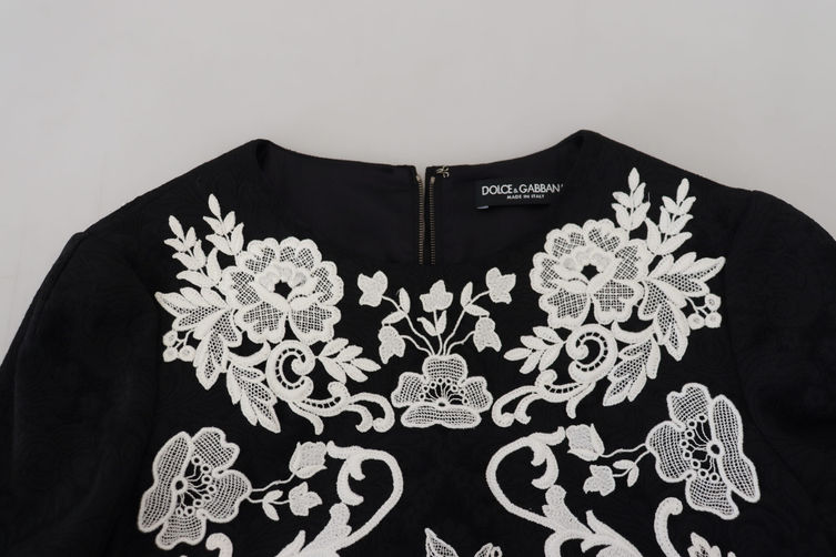 Dolce & Gabbana Black Lace Trim Half Sleeves A-line Dress