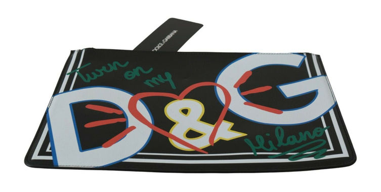 Dolce & Gabbana Black DG Print Mens Zipper Coin Purse Leather Wallet