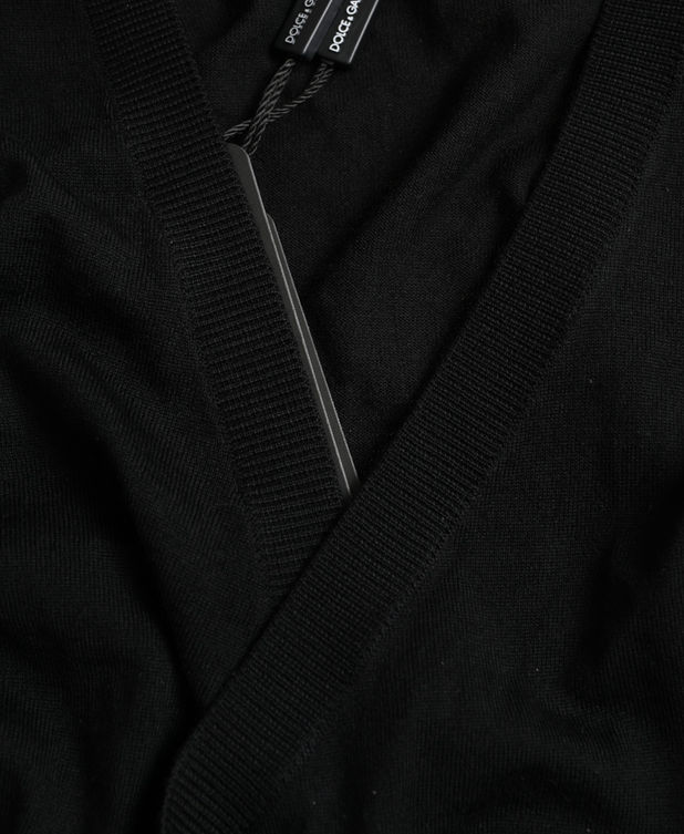 Dolce & Gabbana Black Wool V-neck Crossed Cardigan Sweater