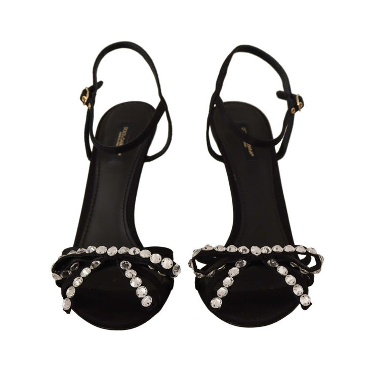 Dolce & Gabbana Black Crystals Ankle Strap Heels Sandals Shoes
