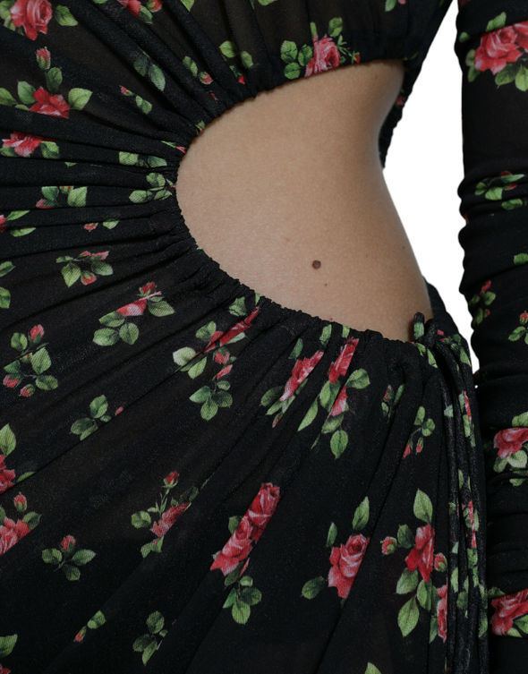 Dolce & Gabbana Black Floral Cut Out Sheath Long Maxi Dress