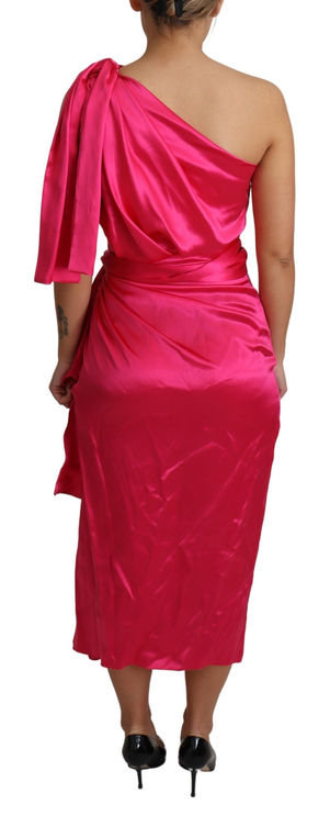 Dolce & Gabbana Dress Pink Fitted Cut One Shoulder Midi Dress
