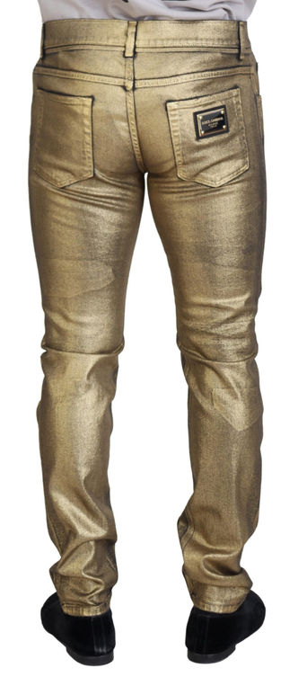 Dolce & Gabbana Gold Cotton Tattered Skinny Men Denim Jeans