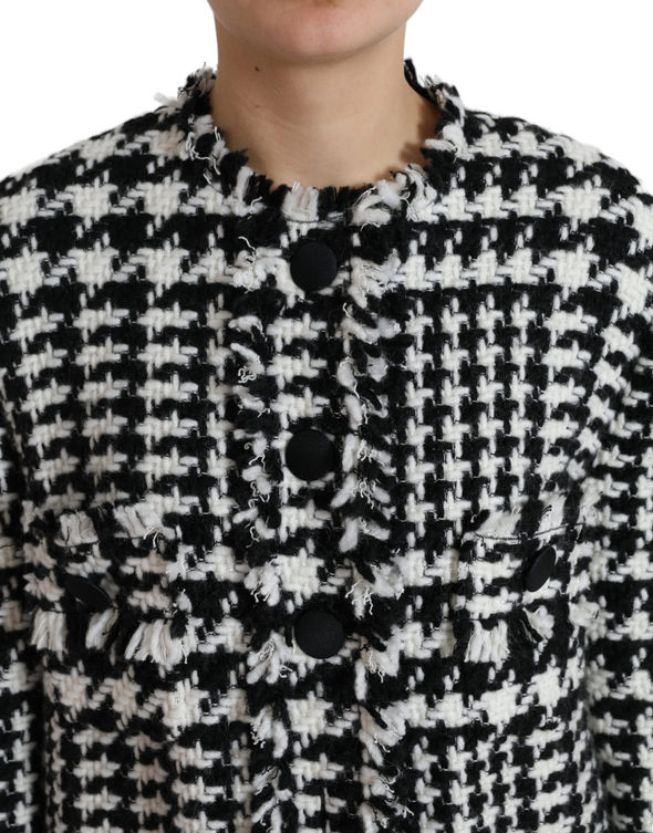 Dolce & Gabbana Black White Houndstooth Trench Coat Jacket