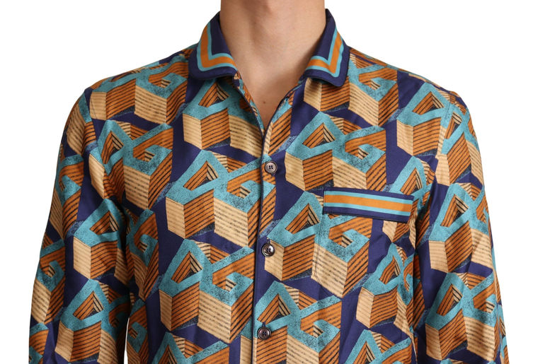 Dolce & Gabbana Multicolor DG Logo Silk Mens Top Shirt