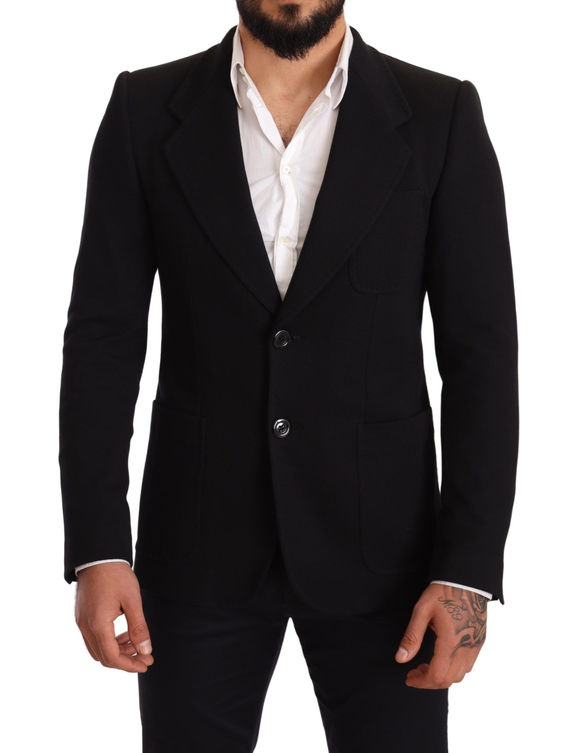 Dolce & Gabbana Black Cotton Slim Fit Coat Jacket Blazer