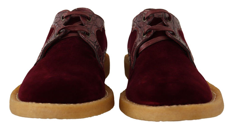 Dolce & Gabbana Bordeaux Velvet Exotic Leather Shoes