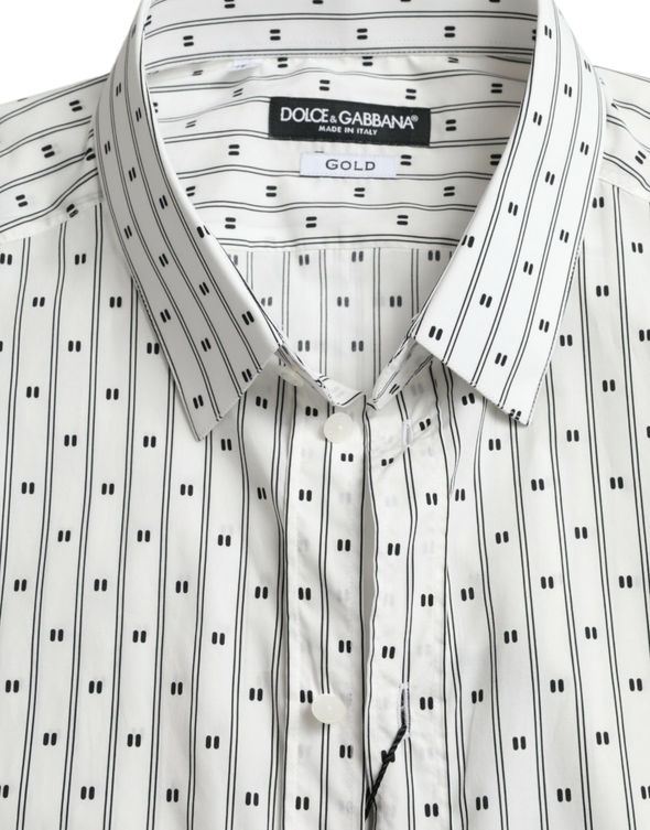 Dolce & Gabbana White Patterned Men GOLD Formal Dress Shirt
