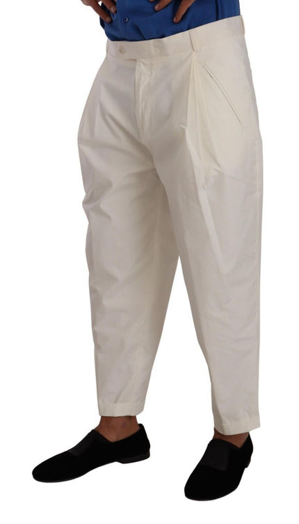 Dolce & Gabbana White Cotton Tapered Men Trouser Dress Pants
