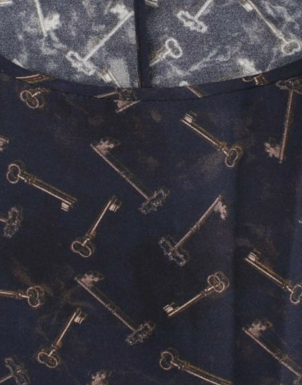 Color: Blue with gold Keys print
