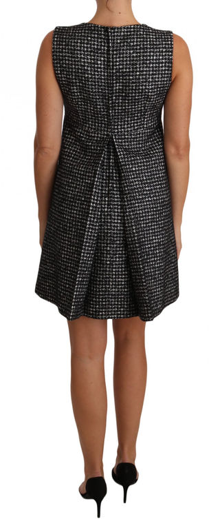 Dolce & Gabbana Gray Houndstooth Floral Appliqué Shift Mini Dress