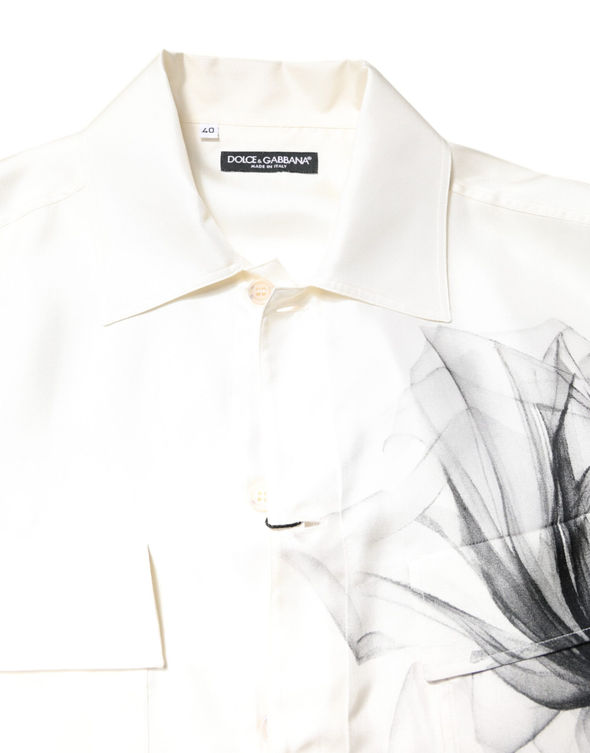 Dolce & Gabbana Ivory Silk Long Sleeves Men Casual Shirt