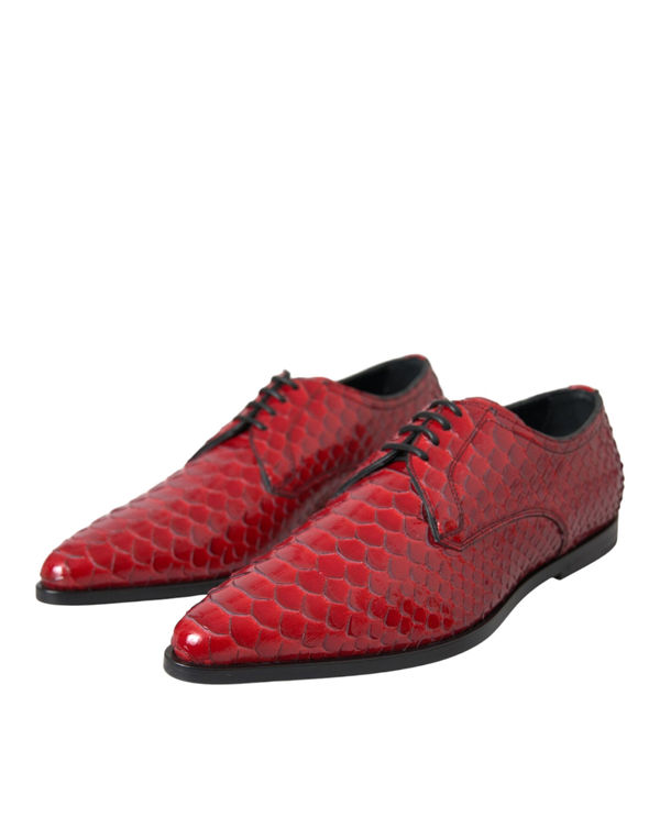 Dolce & Gabbana Red Textured Varnished Derby Men Formal Shoes