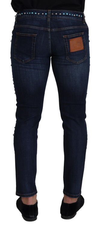 Dolce & Gabbana Blue Cotton Studded Low Waist Denim Jeans