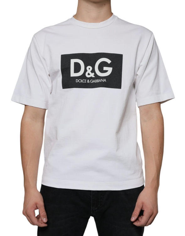 Dolce & Gabbana White Cotton DG Logo Print Casual T-shirt