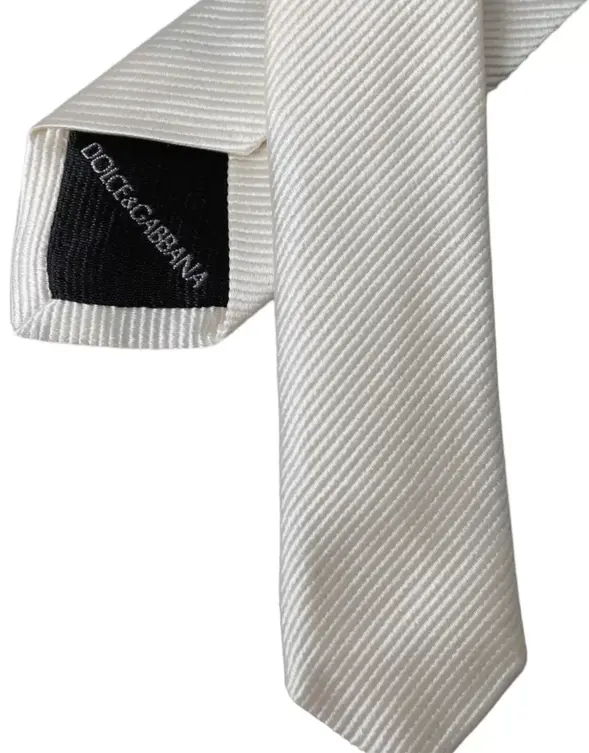 Dolce & Gabbana White Solid 100% Silk Adjustable Tie